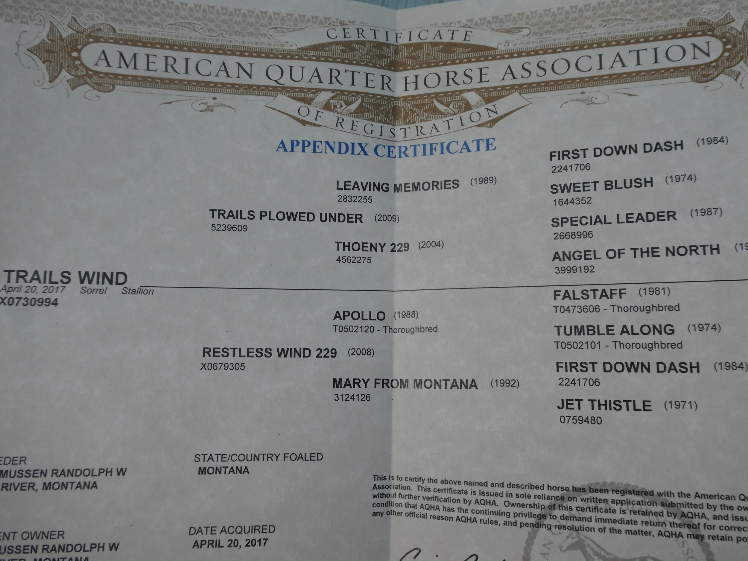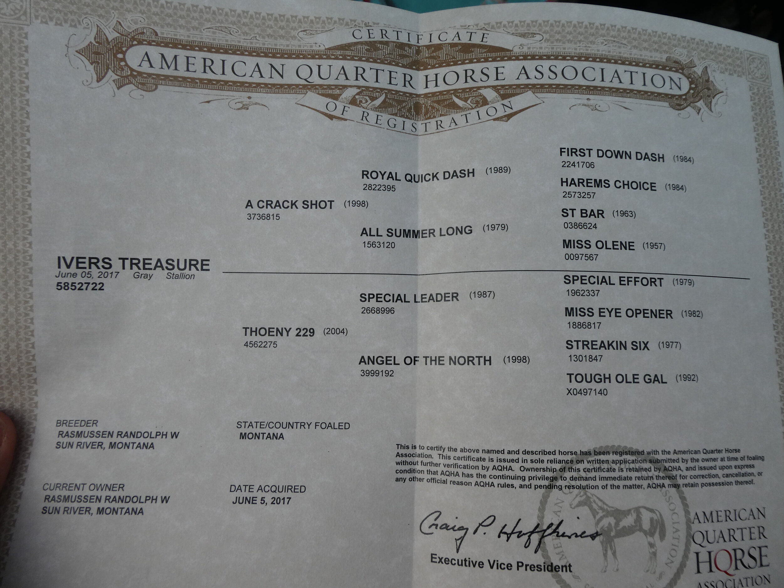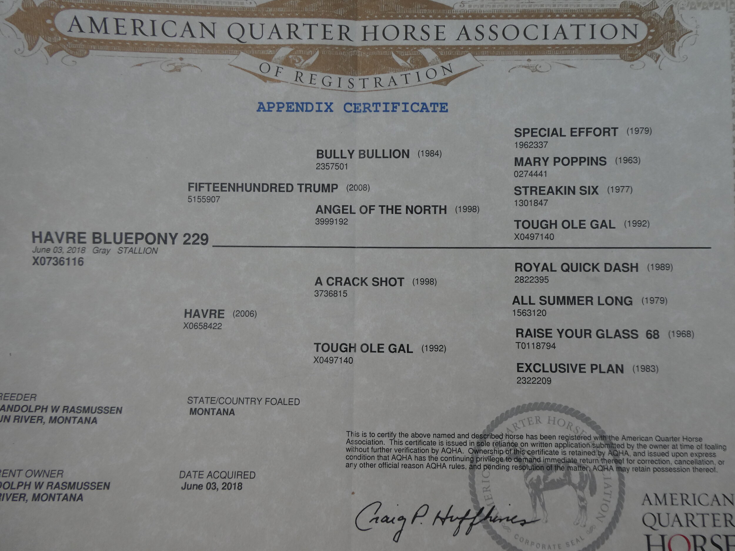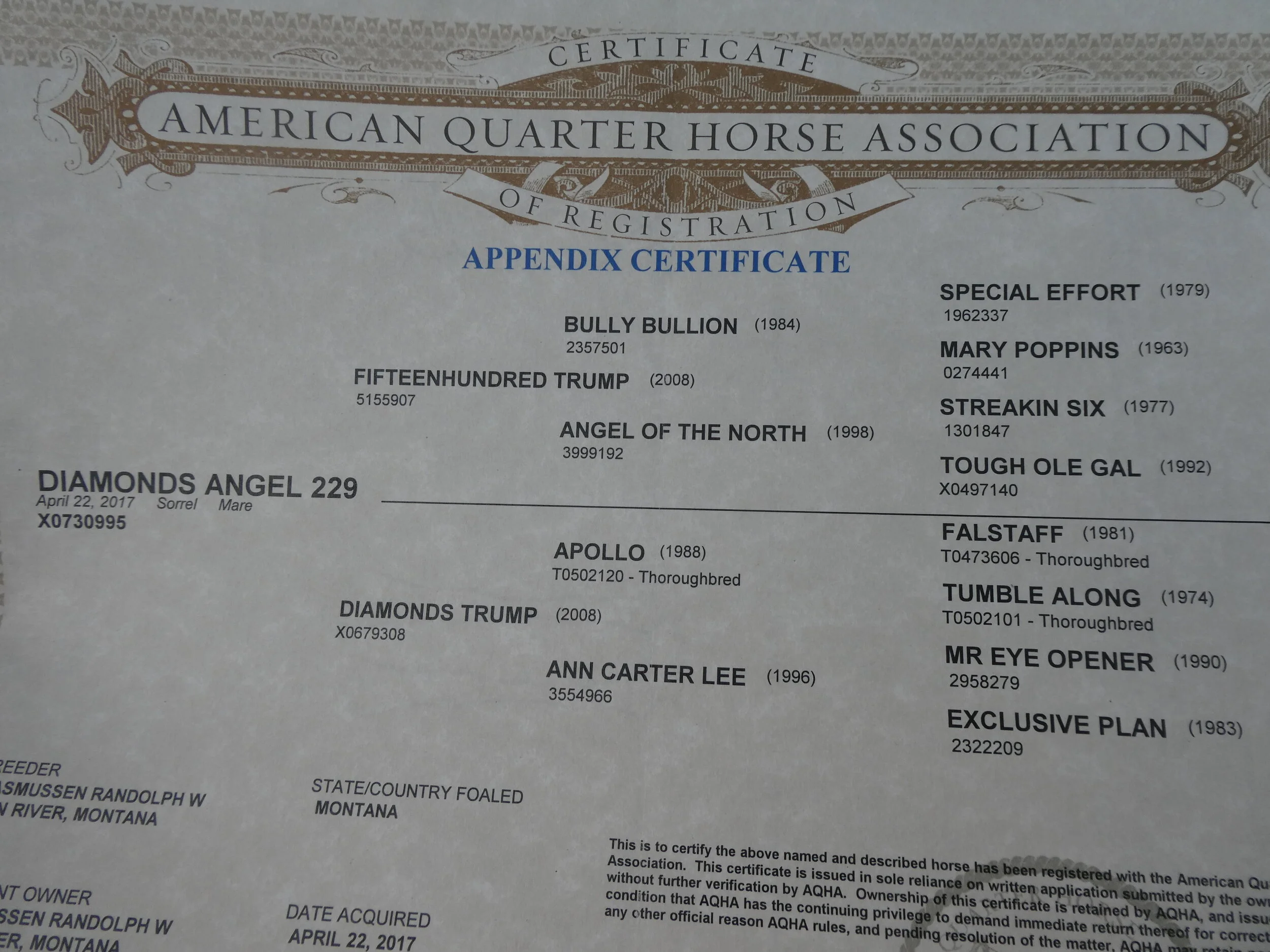 Miss Montana 229 by Fifteenhundred Trump (Bully Bullion) x Summer in Montana (Mr. Eye Opener)