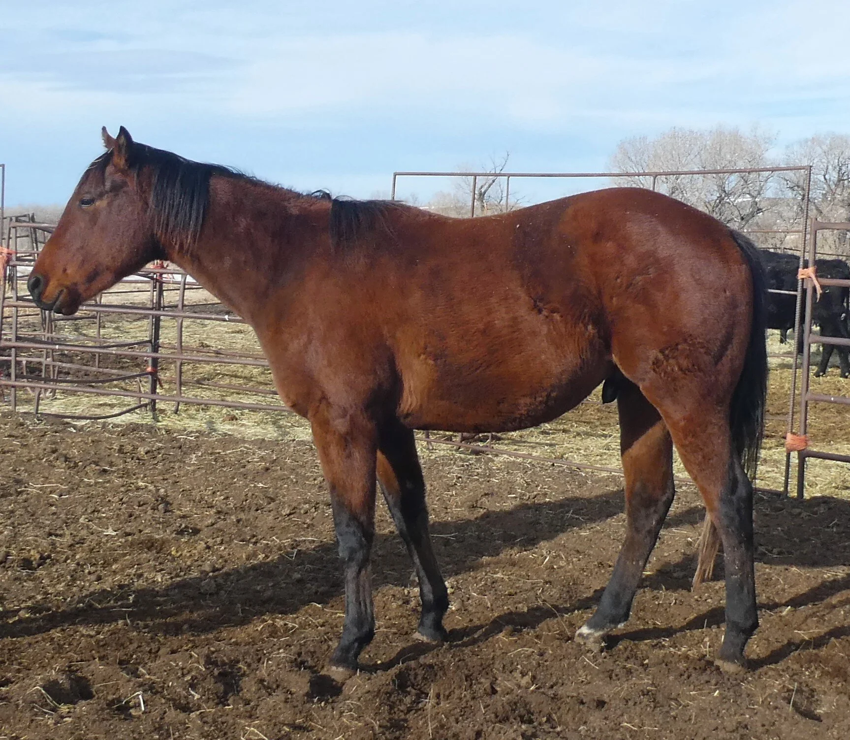 Little Big Shot 229, 2012 brown gelding (A Crack Shot x Merits Cash x Juno Dat Cash). Juno Dat cash was a producer of many 1d and rodeo horses throughout the Pacific Northwest, bottom side is Meritable. 2nd dam, Mini Merits produced earners of over $200k. VGBRA eligible.